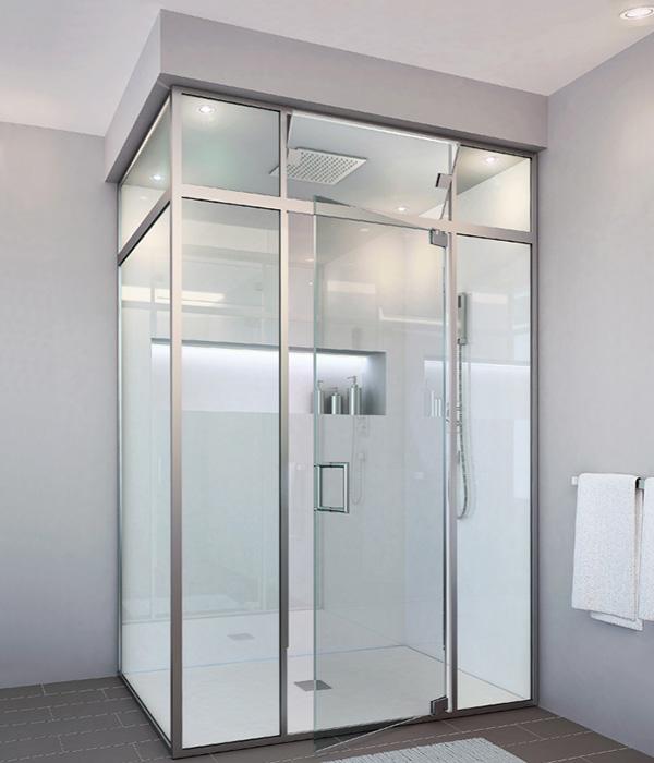 Nhiều phòng tắm ứng dụng vách kính để đem lại không gian riêng tư mà vẫn trang nhã. Vách kính này được dựng lên từ khung nhôm làm bằng hợp kim thép cường lực cao.