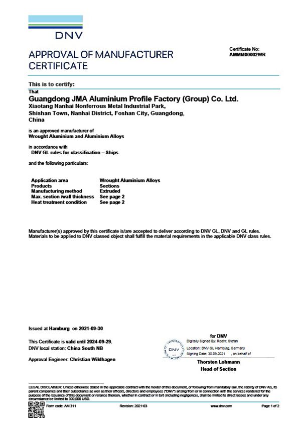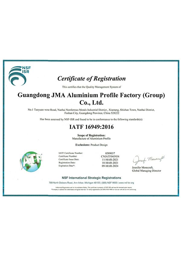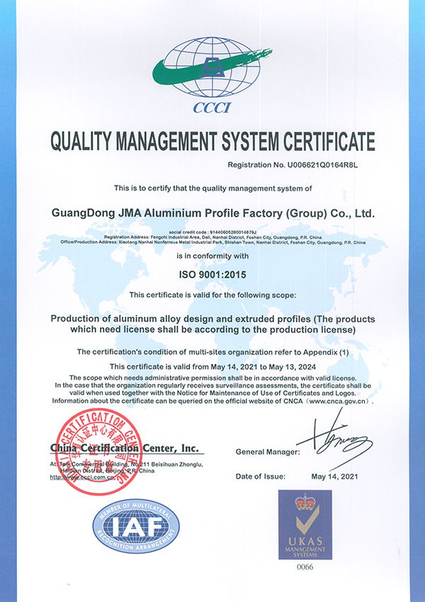 Tháng 5/2021, chúng tôi đã được cấp chứng nhận ISO9001: 2015 trong sản xuất nhôm định hình.