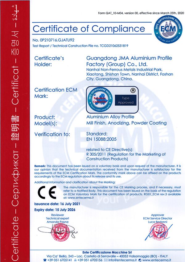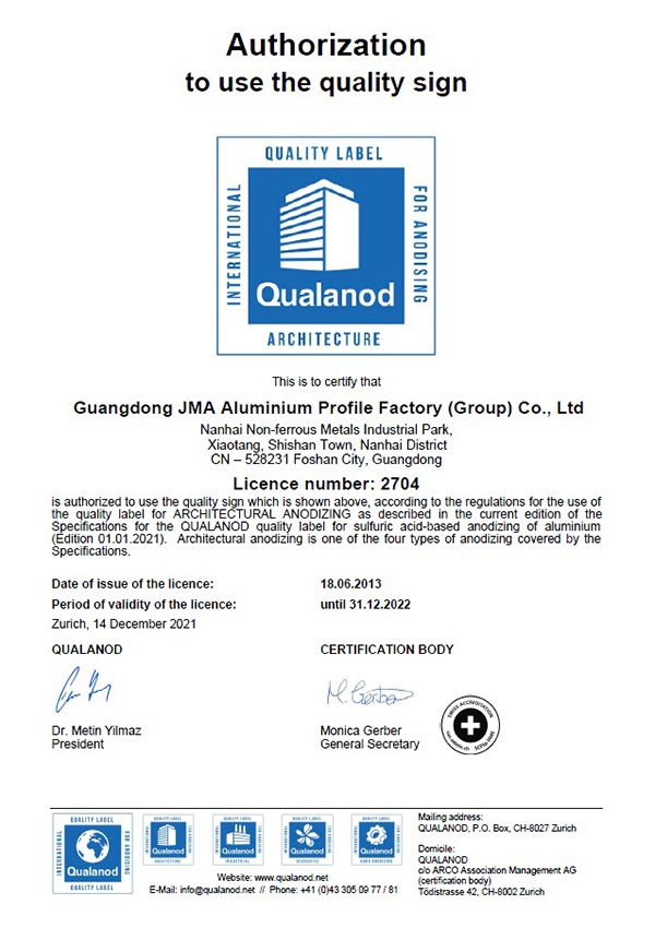 Vào tháng 5 năm 2021, chúng tôi đã đạt được Chứng nhận Hệ thống Quản lý Môi trường ISO14001: 2015. Việc sản xuất các thanh hợp kim nhôm đáp ứng yêu cầu ISO14001: 2015.