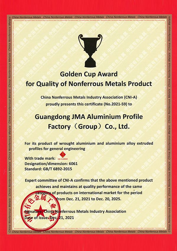 Giải thưởng cúp vàng về chất lượng sản phẩm kim loại màu